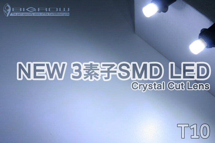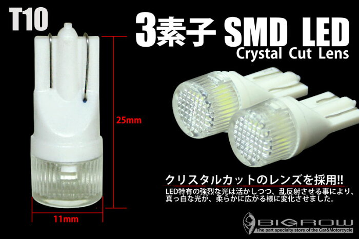 LED T10 ウェッジ球 クリスタルカットレンズ (ホワイト or ブルー)(高輝度3素子SMD)リフレクターレンズを採用)明るく広がる光を実現 ハイエース・ベルファイア・アルファード・エスティマ(BIGROW)送料無料!